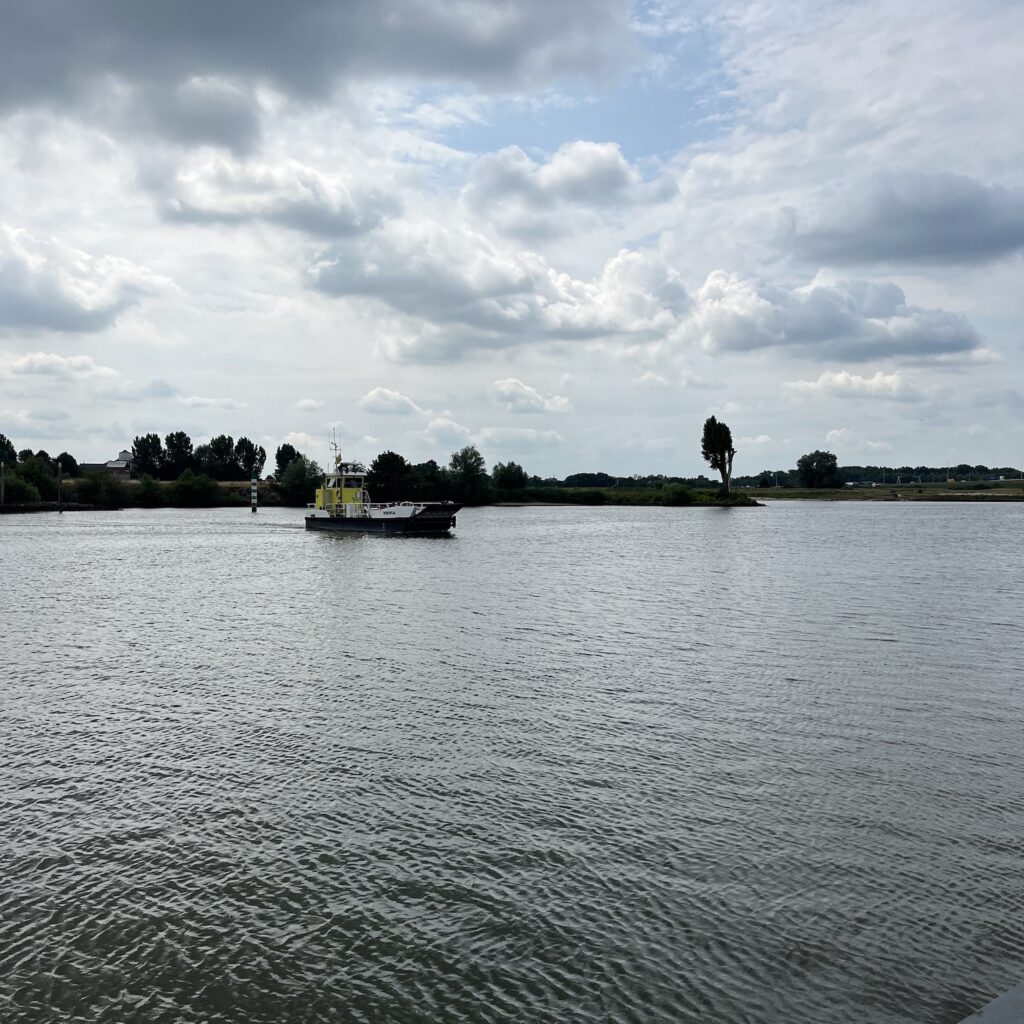 Alles gaat vlot tot Nieuwegein, daar is het in principe een route langs een kanaal, dat kan niet mis gaan. Maar dan is er een omleiding met van die gele borden, die door het kunsthart van de stad voert. Dat is een labyrint, ontworpen in de jaren 80 van de vorige eeuw, waar wordt gesurveilleerd door fatbikebendes, en waar menig Grieks held in spe niet levend uitgekomen zou zijn. Het kost mij trouwens ook de nodige moeite, maar na een broodje mozarella van de Hema lukt het uiteindelijk toch. Dan is het nog maar een klein stukje tot het pontje naar Vianen en dan is het lunchtijd.