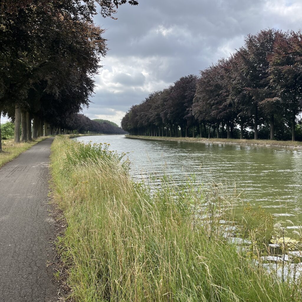 Om kwart over negen zit ik in het centrum van Den Bosch aan de koffie. De Bossche bollen laat ik passeren, mij iets te heftig op de vroege ochtend. Het is mooi fietsen hier, kleine dorpjes en goed geasfalteerde paden. Aan het eind van de ochtend in Sint-Oedenrode nog een keer koffie en een tosti Brie erbij voor de kleine trek. Nog maar 25 kilometer en dan ben ik er al. De luchten zijn even dreigend als gisterenavond en er staat een stevige wind, maar regen valt er dit keer niet. Ook het weerbericht voor morgen is aardig bijgesteld, in positieve zin.
