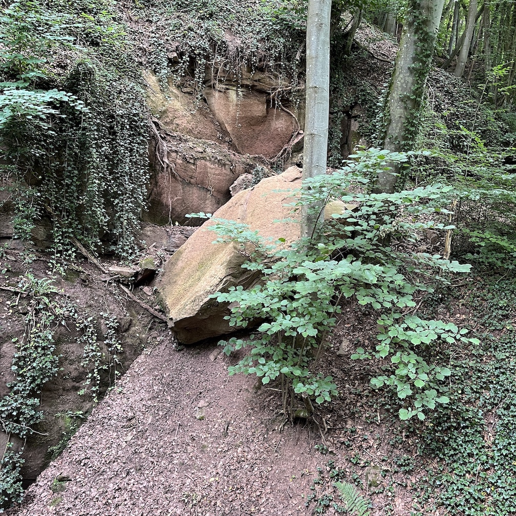 Ik zal jullie niet vermoeien met alles wat ik vanmiddag geleerd heb, maar een paar leuke weetjes moet ik kwijt. In de beken hier kun je goud vinden, een van de redenen voor de Kelten om zich hier te vestigen. Oorspronkelijk was het hele gebied bedekt met loofwouden, maar die zijn in de Middeleeuwen allemaal gekapt. Wat er voor terugkwam, was schrale heide. Totdat de Duitse overheid in de vroege 19e eeuw Douglassparren ging aanplanten en het effect zien we vandaag nog. Tot zover het historisch bulletin