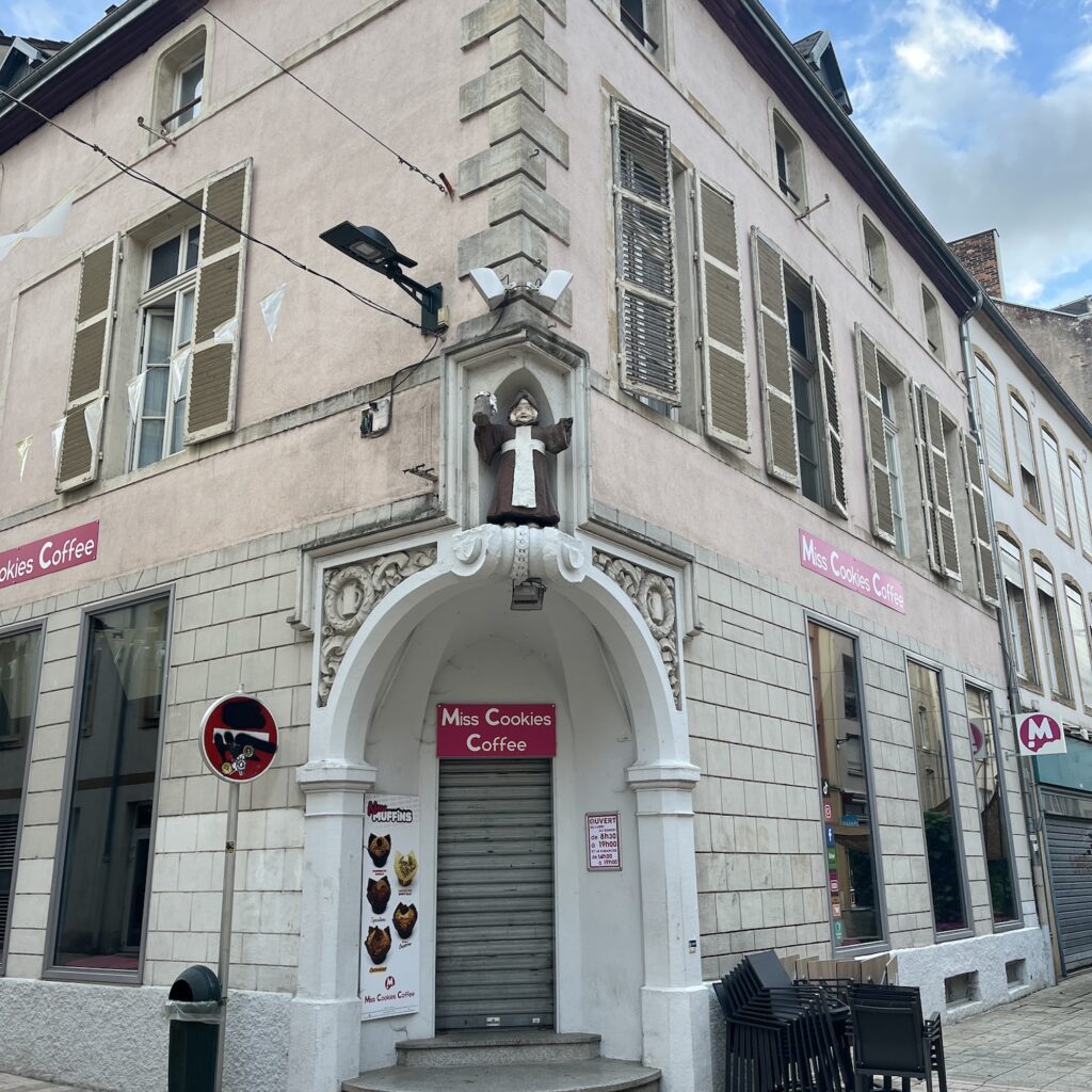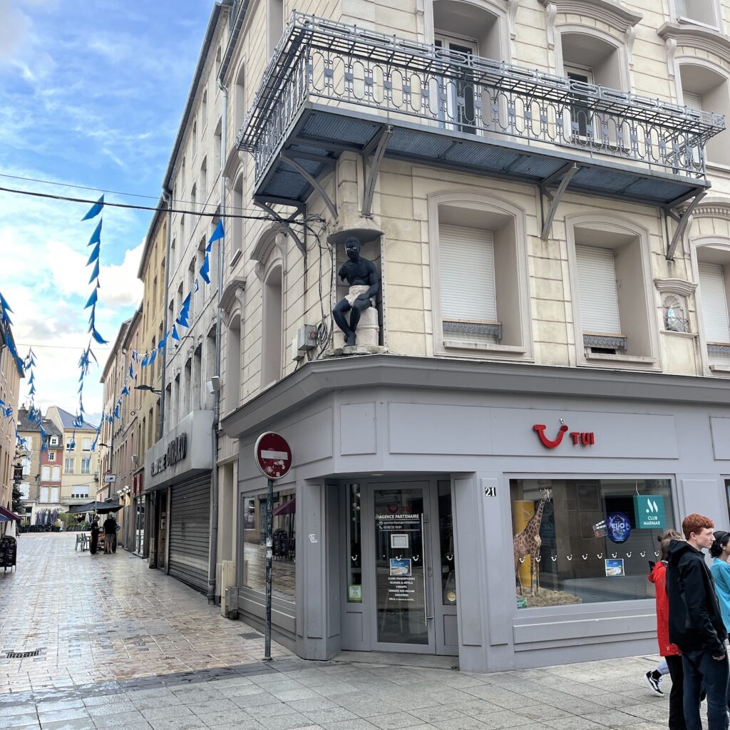 Het Hotel du Parc is een beetje shabby, hoewel je dat niet aan de prijs afleest, voor die prijs slaap je ook in Noorwegen in een hotel. De kamer ligt aan de cour en heeft een donkerblauwe muur, wat het nogal somber maakt. Maar er staat ook een ventilator dus ik was snel een t-shirt en sokken en blaas ze droog. Thionville is een beetje een verlopen stad, veel leegstand en slecht onderhouden straten (dan realiseer je je opeens wat een verschil dat maakt voor het verkeerslawaai) hoewel je aan het stratenplan en de gevels kunt zien dat het grandeur heeft gekend. Helaas zijn op maandag de musea dicht, dus veel meer dan een beetje rondwandelen zit er niet in.