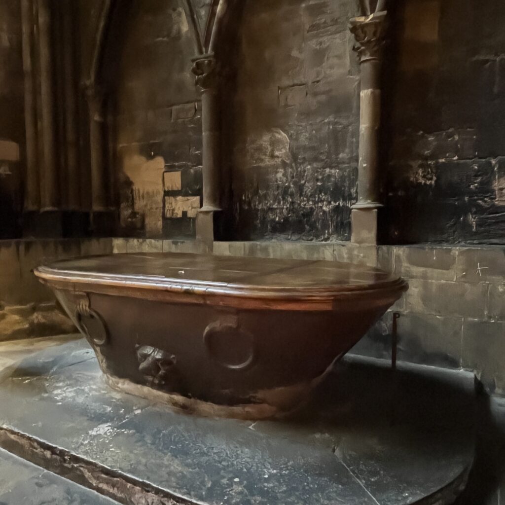 Deze ochtend brengt Mayke haar fiets terug, in de winkel is het zo druk dat ze geen tijd hebben om lastige vragen te stellen. Na een kop koffie in een parkje lopen we door de oude stad, bezoeken het stadhuis en komen we precies twee minuten voor een orgelconcert begint in de Domkerk. Dat wordt een heerlijk uurtje in een koele kerk luisteren naar onder andere Purcell en Elgar. Ik neem een van de stukken op (Nimrod van Elgar) en zal het later toevoegen.