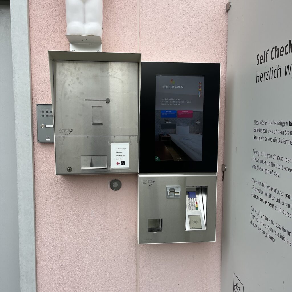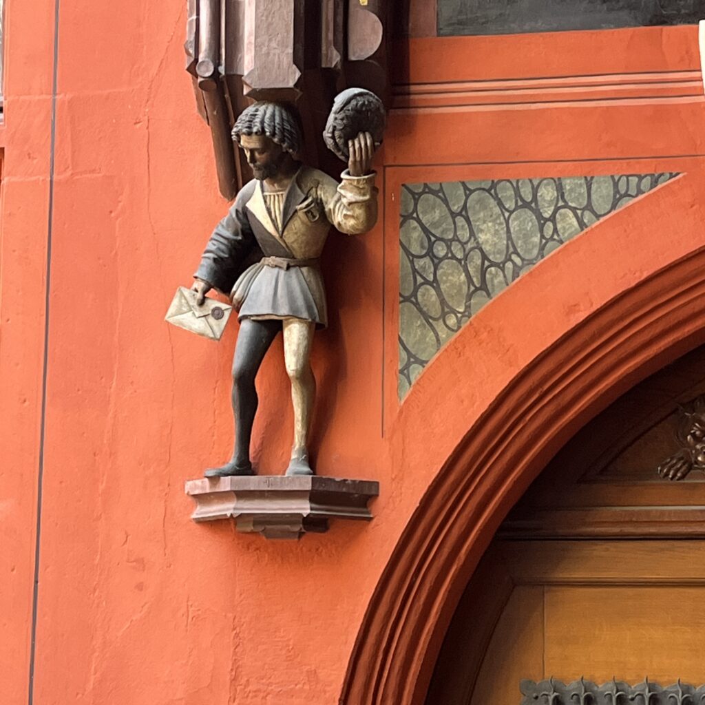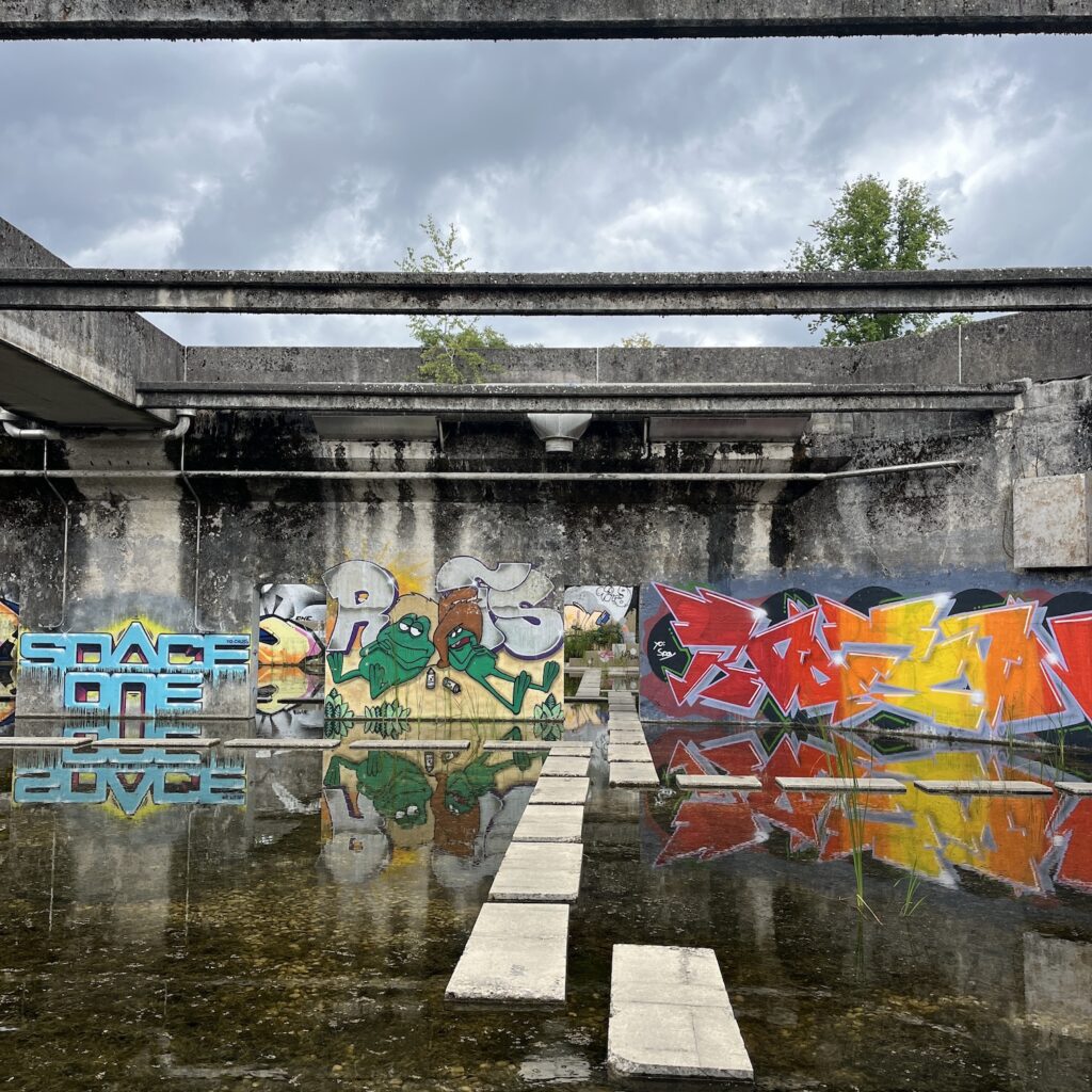 Natuurlijk zijn we weer vroeg wakker en we zijn ruim op tijd op het station. Gisteren hebben we een beetje onderzoek gedaan en het lijkt slimmer om niet naar het Centraal Station van Basel te gaan maar naar Basel Bad. Dat ligt aan onze kant van de Rijn, is een stuk rustiger en je kunt de fiets makkelijk op het perron krijgen. Het is een mooi fietstochtje door het bos vanaf Riehen. Ik geef mijn fietsgids Maastricht – Basel aan Tobias en Silke ter inspiratie. Deze zomer fietsen ze naar Bretagne, maar ze willen nog een keer naar Amsterdam. Alleen lijkt de route langs de Rijn ze niet zo leuk vanwege alle industrie langs de oevers en daar hebben ze gelijk in. Ik ben in 2022 langs de Rijn naar de Main gefietst en je ziet heel wat fabrieken onderweg.