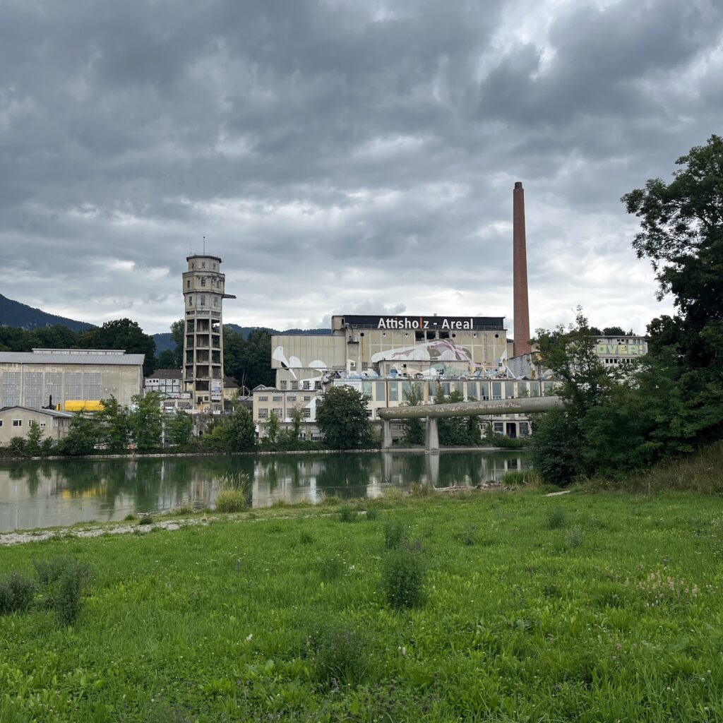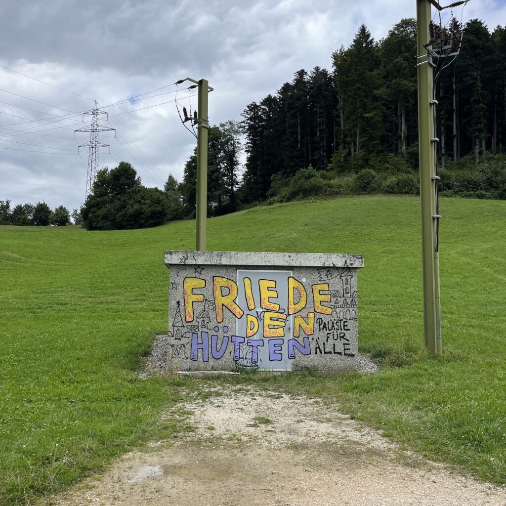 De camping blijkt een hele lange strook gras langs de oever, hutje mutje met tenten bepakt. Gelukkig is er ook nog een “obere Zeltwiese” alleen te bereiken via een hele steile helling, maar die is een stuk rustiger. We zetten de tent op, nemen een koude douche (warme douches doen ze hier niet aan, er is sowieso maar één mannen- en één vrouwendouche) en verdwijnen dan snel naar het dorp om boodschappen te doen en te eten.