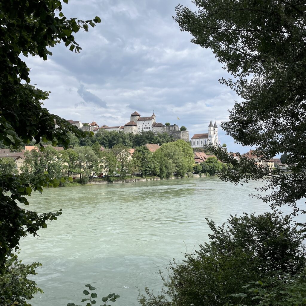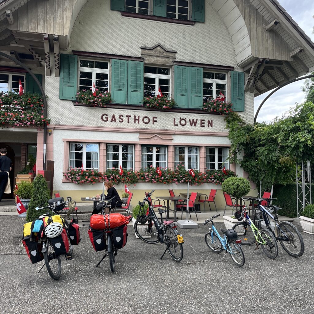 Uiteindelijk is het nog een uurtje fietsen naar Riehen, waar we aan het eind van de ochtend totaal bezweet aankomen, het is inmiddels boven de dertig graden.