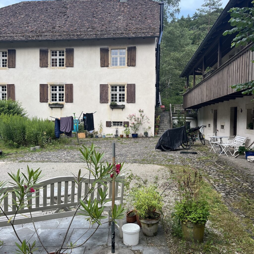 In Saint-Ursanne nemen we een stevige lunch, want vanavond eten we brood in onze b&b want die heeft dinsdag en woensdag Ruhetag. De afspraak is dat de sleutel in de deur van de kamer zit en dat we het geld achterlaten. Onderweg slaat toch een lichte twijfel toe, wat als? Nou dan zetten we de tent gewoon op in de tuin en we plassen in het bloemenperk is het idee.