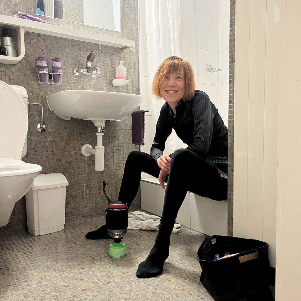 En de metingen, hoe zit het daarmee? Ik heb nu tien keer mijn gewicht en vocht-, vet-, en spiermassa gemeten voor vertrek en na terugkomst. Dat levert een reeks uitkomsten op waar je niks mee kunt, dus ik ga over op iets anders. Mijn eerste gedachte was mijn geestelijk welbevinden te meten voor en na, maar ik vrees dat dat niet tot nieuwe inzichten leidt. Er zijn teveel factoren die daar invloed op hebben en die niks met fietsen te maken hebben. Ik denk dat ik van twee dagen geen nieuws tot mij nemen gelukkiger wordt dan van een maand fietsen.
