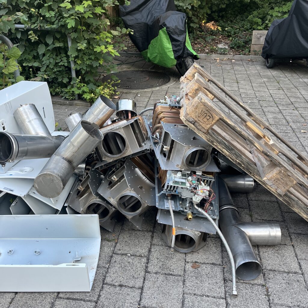 Toen we terugkwamen op de camping, viel mijn oog op een hoop afgedankte geysers, hetgeen een verklaring zou kunnen zijn voor de koude douche die middag. Ondanks de enorme drukte op de camping, was het vannacht doodstil en de volle maan gaf een mooi zacht licht aan ons hooggelegen tentenveldje, terwijl de eenden uit de Rijn vredig in het campingzwembad beneden dobberden. Of het de chloor is of het warme water wat ze aantrekt weet ik niet, maar het is een leuk gezicht.