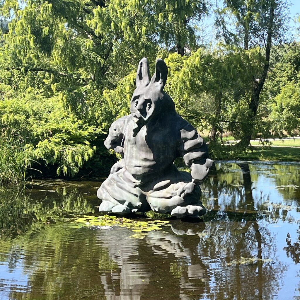 In de middag gaan we naar de vlakbij gelegen Fondation Beyeler, een particulier museum voor moderne kunst in een klein parkje. Naast de vaste opstelling met 20e eeuwse kunstenaars als Picasso, Rothko en Dumas is er een overzichtstentoonstelling met werk van Vija Celmins, waar ik nog nooit van gehoord had. Er hangen veel grote potloodtekeningen op linnen van de woestijnbodem, de sterrenhemel of de golvende zee. Perfect gedaan, maar mij spreekt het niet zo aan. Alleen haar vroege werk vind ik interessant, als ze alledaagse voorwerpen en foto’s uit kranten en tijdschriften natekent.
