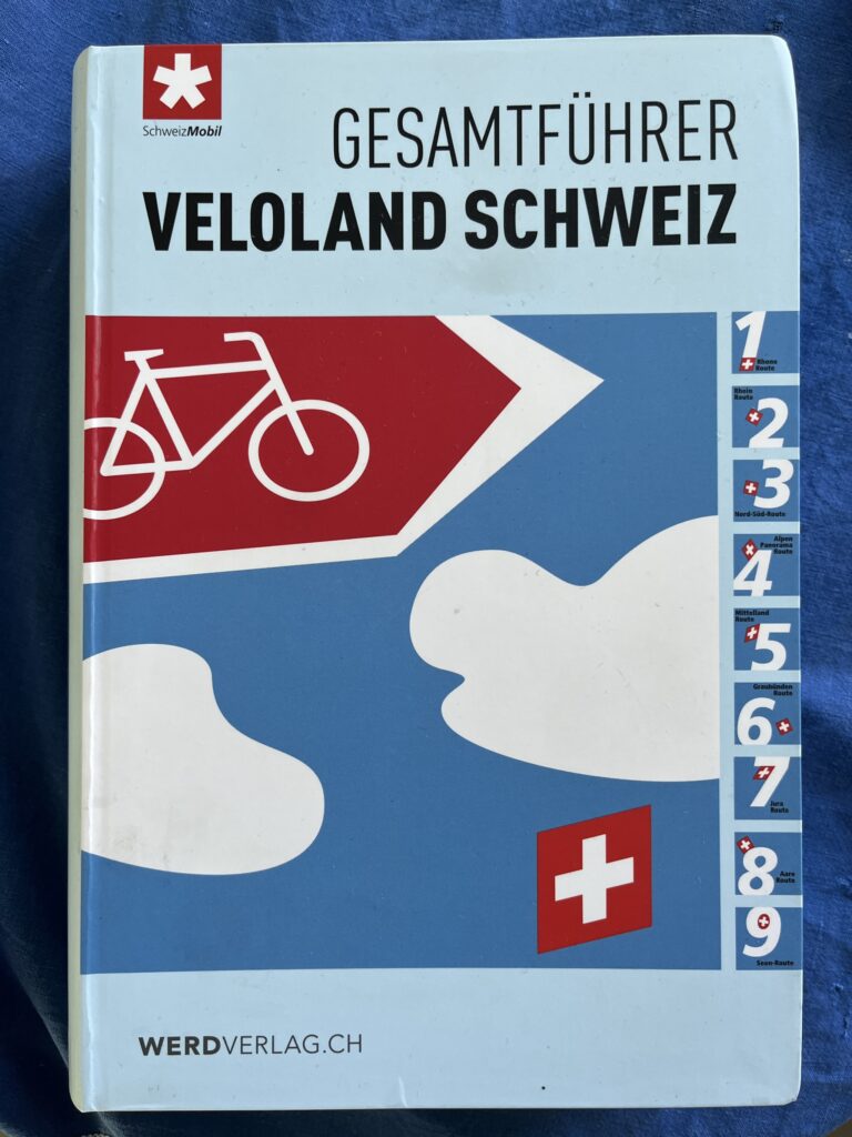 Maar kun je dan fietsen in Zwitserland? Jazeker, er is zelfs een organisatie die lange afstandsroutes heeft uitgezet door het hele land en beschreven in de Gesamtführer Veloland Schweiz. Dat is een dikke pil met een gewicht van ruim een kilo (1.021 gram) en die nodigt niet uit tot meenemen op de fiets. Sterker nog, je vraagt je af of de auteurs van Veloland Schweiz zelfs wel eens gefietst hebben. Maar goed we gaan het zien.