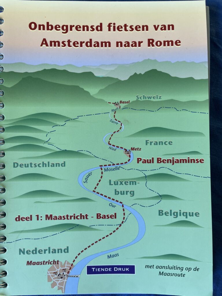 De aanrijroute heb ik ook al bedacht, ik ga via Maastricht, Luxemburg en de Vogezen naar Basel. Dat doe ik, voor de kenners, via de route Benjaminse. In Basel tref ik Mayke op het station en dan fietsen we samen het rondje.